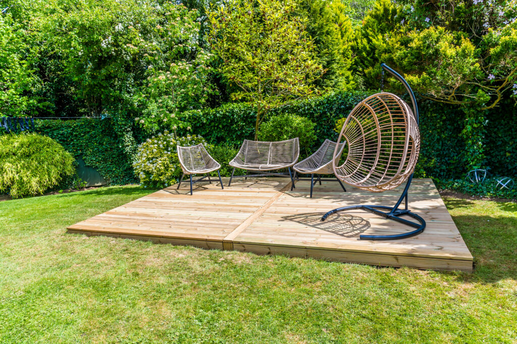 Yes. Timber decking is particularly effective for sloped or uneven gardens. A raised framework keeps the surface level while accommodating changes in ground height. This makes decking a practical solution where patios may require extensive groundwork.